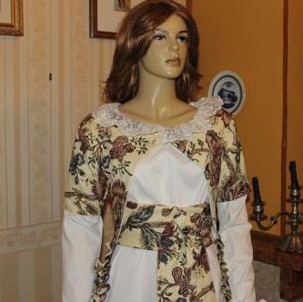 Abito composto da soprabito o levite realizzato in lampasso pesante con motivi "arbre de vite" con code' e fascia in stoffa e fantasia del soprabito.